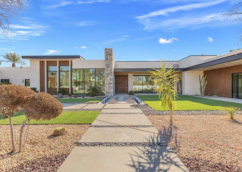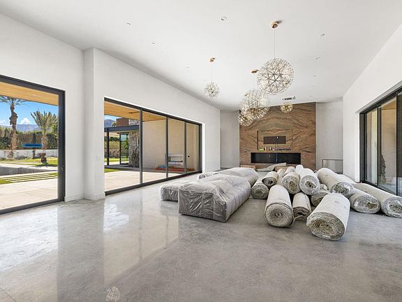 Set behind the guarded gates of Renaissance on Clancy Lane, this newly constructed architectural estate represents a rare convergence of vision, craftsmanship, and scale in Rancho Mirage's most prestigious enclave. Positioned on over an acre with a coveted south-facing orientation and sweeping mountain views, the residence delivers a level of design and execution typically reserved for global trophy properties.Every line of the home reflects intentional artistry. A dramatic patina steel entry door opens to hand-laid stone walls, tongue-and-groove ceilings, and seamless indoor-outdoor transitions through expansive pocket doors. Natural materials, warm textures, and precision detailing create an atmosphere that is both powerful and serene.Designed by architect Ben Hertz with interiors curated by Cordelia Reynolds, the estate offers approximately 8,200 square feet of interior living space and over 14,000 square feet under roof, thoughtfully composed for both grand entertaining and refined daily living. The primary kitchen is a statement, anchored by dual oversized islands, premium appliances, and custom cabinetry, supported by a full secondary kitchen and butler's pantry with spice closet. A temperature-controlled wine room adds to the home's curated sophistication.The primary suite functions as a private retreat, featuring a spa caliber bath with soaking tub overlooking a tranquil Zen garden, an oversized shower & direct access to a private outdoor spa and shower. Custom closets with integrated LED lighting are found throughout the residence.A state-of-the-art theater room delivers a true cinematic experience with a 185-inch Sony Bravia screen, luxury recliners, and full soundproofing. Architectural fireplaces are integrated throughout the residence, providing warmth, balance, and a quiet sense of permanence.Outdoors, the estate unfolds as a private resort. A massive L-shaped pool anchors the grounds, complemented by expansive covered patios and a fully equipped outdoor kitchen featuring an EVO and built-in barbecue. A separate outdoor game room with dedicated pool bath enhances the resort-style experience, ideal for entertaining without entering the main residence. Two two-car garages plus an approximately 450-square-foot carport complete this home. Scheduled for completion in spring 2026, this is a residence created for a buyer who values architecture, privacy & distinction. Homes of this caliber are not compared. They are claimed.