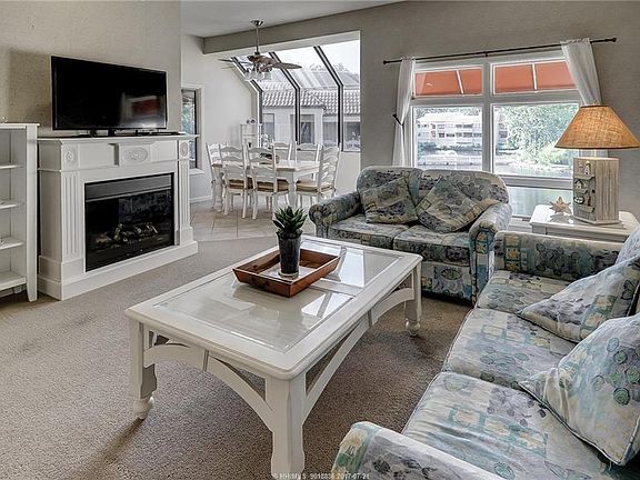 Long water & pool views abound from this highly desirable top floor unit that is the closest to the Shelter Cove Marina. Kitchen has granite countertops & recently painted cabinets. Guest BR has its own privacy & bath. Master Bedroom has spa-like bath and entire unit comes fully furnished. Enjoy time at the complex's heated & cooled pool/spa which also has a large sun deck. Underneath covered parking and a storage locker for extras. All of this in the middle of Shelter Cove Marina; restaurants, shopping, dining, fishing, kayaking, and access to all Palmetto Dunes amenities & beaches.