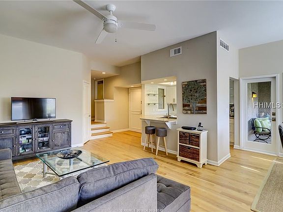 Spectacular 2 BR/2BA Villa located in walking distance to Shelter Cove Harbor. This Villa has recently been remodeled from floor to ceiling. New Kitchen w/ granite countertops, ss appliances, hardwood floors throughout the main area, recently painted, and much more. Walls of windows make for a light, bright, open floor plan. Spacious master bedroom with ensuite bath with new stone flooring, custom shower and cabinets with stone countertops. Relax on your private back porch overlooking beautiful landscape and lagoon beyond. Great 2nd home or investment property. Just minutes to 3 miles of pristine beaches in Palmetto Dunes Resort.