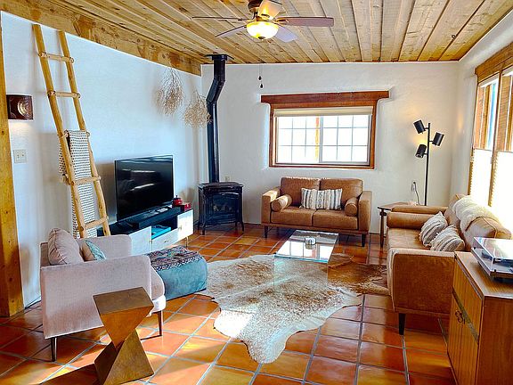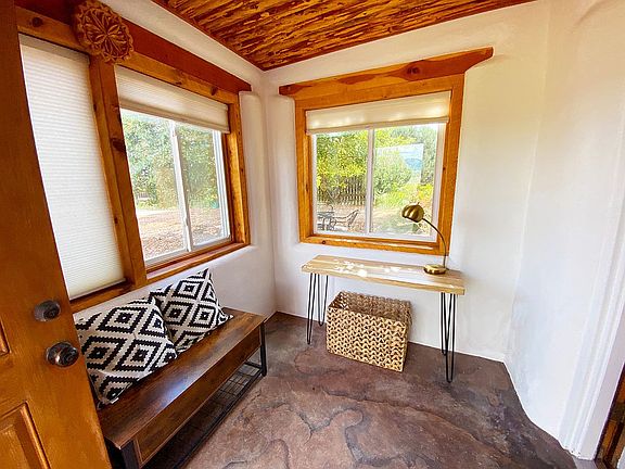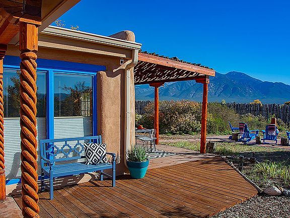 Artistic and fully renovated pumice and adobe home with mature landscaping and inspiring views.