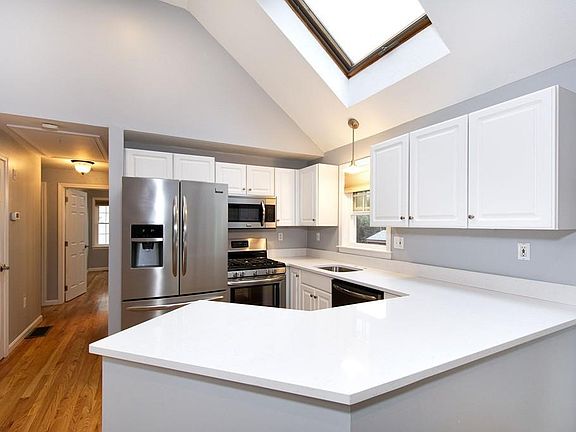 Stunning updated Ranch in desirable cul-de-sac neighborhood. Open concept floor plan boasting Cathedral ceilings, gleaming refinished hardwood floors, including a Chef's kitchen w/new 'Carrara Marni' Quartz countertops, Stainless appliances equipped with a five burner gas cook top. Entertain family and friends in the sun-filled open living room leading out to a private deck and the inviting Belgard patio with fire-pit ready for S'mores. Spacious master bedroom suite with cathedral ceilings and jack n jill bath. Lower finished level includes a full bath, custom finishes for a media, home office or playroom. Many new updates include, Windows, A/C, Hardware, Generator Hookup, Slider and many more. Walking distance to Birch st Playground and sports fields. Welcome Home!