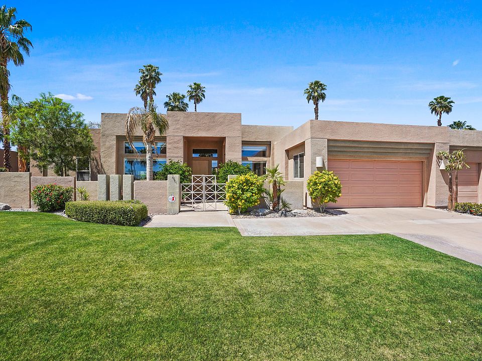 Welcome home to this rarely available architectural home in the heart of Rancho Mirage. Take in the western mountain views as soon as you step inside. The dramatic, high ceilings with lighted alcoves surrounded by walls of glass accent the bright open floor plan. There are formal living and dining areas that are both open to the family room and gourmet kitchen areas. The master bath has been recently updated with a new shower and deep soaker tub. The large yard and pool are perfect for entertaining. This home has been recently updated with a newer roof, a/c and awnings across the entire back of the house. This house offers great manageable size and privacy in a small gated community.