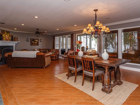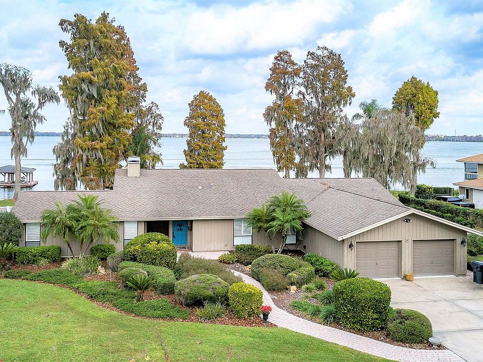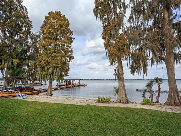 This Stunning Chain of Lakes property is situated in the gated community of Skidmore on Lake Eloise. Offers; 4 bedrooms and 3 ½ bathrooms plus family room, Florida room and laundry room. Open plan provides panoramic lake views. Hardwood flooring and carpet in bedrooms. Custom shutters, crown moulding and trim. Living room has wood burning fireplace and recessed lighting. Kitchen includes all stainless appliances and granite countertops. Recent upgrades include new hardware cabinets, new interior and exterior paint and new landscaping with irrigation pump. Home security system with cameras. Brick paved driveway & walkway, covered front porch. Beautifully landscaped with lighting and mature Palm, Oak and Cypress Trees. Boat dock with lift has recently been painted and has new motor. Situated on .70 acre lot with 140ft frontage on Lake Eloise.