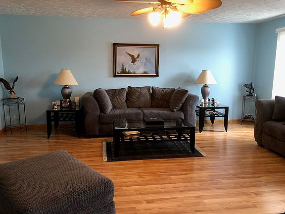 Immaculate ranch on 2.48 acres. 2 car garage at main house, +2.5 car garage & RV storage building. Storage galore! Front brick w/Aluminum siding. All new gutters & down spouts w/leaf guards. All new wood on rear deck. Lower deck is wired for hot tub. Fresh paint in every room & ceilings. Easy walk up attic access. Rec room w/bar, gas fireplace, & 1/2 bath. New hardwood floors. All newer windows thru out . Roof has 40 yr warranty!! Appliances included & Mineral rights convey w/full asking price!!