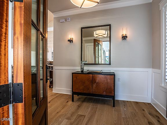 contemporary design with meticulous attention to detail. Step into the gracious foyer from the gas-lantern adorned veranda to the expansive ''beyond breathtaking'' living room with vaulted beamed ceiling and clerestory windows that flood the room with natural light. A linear gas fireplace with stone surround establishes the focal point of the space, while white oak flooring flows seamlessly throughout. Spectacular gourmet kitchen well appointed with high end appliances and expansive Cambria luxury quartz island is perfect for entertaining! Large walk-in pantry has custom shelving, wine rack and beverage refrigerator. The dining room features a painted coffered ceiling with views of the private wooded backyard. A glass window wall allows light in from the Carolina room's skylights and windows. Unwind in the charming Carolina Room filled with light and featuring a beadboard paneled vaulted ceiling, French double pocket doors to the living room and sliding panel door out to the deck. The library beckons with his/hers desks topped with honed Carrera marble, bookcases plus cushioned window seat with storage beneath. Master Suite is a private sanctuary with elegant built-in bookcase, two walk-in closets with custom dressers, shelving and ample shoe storage. Luxurious Master bath features dual quartz top vanities with Rohl plumbing fixtures, oversized zero entry shower and oval Bain Ultra soaking tub. Laundry room with new washer and gas steam dryer is conveniently located outside the master closets. Unleash your inner artist in dedicated Craft and Hobby Room, complete with quartz sink, built-in desk, cabinets and door to small side deck. Two Guest Bedrooms with walk-in closets, Guest Bathroom and Powder Room complete the main level. Bonus Room is a large guest suite featuring a Murphy bed, bookcases, built-in desk with storage, ensuite Bathroom with tub/shower, storage area, as well as an exterior balcony. Walk-in attic area has enormous storage capacity. Garage features Overlay Carriage House garage doors for 2 cars and golf cart. Composite decking on front veranda and back decks is easy to maintain. Simply Incomparable!