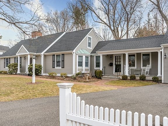 OPEN HOUSE CANCELLED SUNDAY 4/2. This charming cape has been lovingly maintained, expanded and updated. It offers an incredible in-law suite and three-car garage! With 5 bedrooms, 5 full baths and a lovely fenced-in yard, there is plenty of space for a growing family. In the main living area, a classic foyer leads to a formal living room, dining room, and updated eat-in kitchen with stainless appliances. The kitchen opens to a private deck and yard. There is also a study and two bedrooms on the first floor. Upstairs there is a spacious primary suite w/ gas fireplace, large walk-in closet/dressing room and luxurious bathroom. There is an additional en-suite bedroom on the second floor. The expansive in-law suite provides open concept living area with two full baths, a kitchenette and large bedroom, walk-in closet and access to a private deck. Wonderful updates to this home include a new roof in 2021, and new heating and cooling systems installed in 2022.