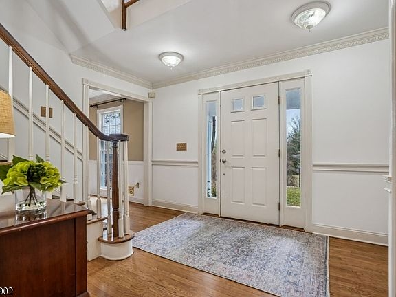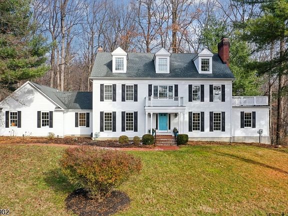 Welcome to this spacious 5-bedroom, 4.1-bath center-hall colonial on 1.17 acres in a quiet cul-de-sac. This stately home offers classic architecture, generous rooms, and a layout ideal for everyday living and future customization. Note: the home is being sold as a 5-bedroom but has a town-verified 4-bedroom septic. The first floor features hardwood throughout, a traditional floor plan, and a two-sided fireplace shared by the office and living room. The family room includes a second fireplace and opens to the kitchen, with access to a private deck perfect for morning coffee or outdoor dining overlooking the wooded setting. The second level offers three bedrooms, including a spacious primary suite with fireplace, full bath, and walk-in closet. The third level provides two additional bedrooms and a full bath, ideal for guests or flexible living space. A finished walk-out basement expands the living area and opens to a peaceful patio. Recent updates include a new roof (2022) and fresh exterior paint. Convenient to shopping, restaurants, commuter routes, and local schools, this home offers comfort, privacy, and accessibility. With its generous layout, solid construction & thoughtful updates, this property presents an excellent opportunity to create a personalized retreat in Bernardsville.