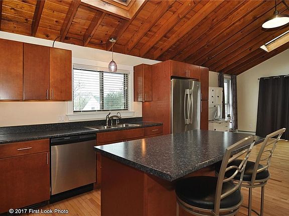 Enjoy loft-style living without having to pay rent or condo fees! This unique home with contemporary flare throughout is a must see. Recently remodeled featuring master suite, 2 full baths, updated kitchen with stainless appliances, young roof and windows, gas heat, 2 car garage. Enjoy natural light from skylights above within fabulous wooden, beam ceilings. Beautiful sliders lead to deck to enjoy the outside. Located in desirable Riverside. Perfect in every way!