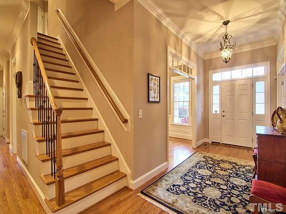 Largest lot in Treyburn Forest on 1 acre cul-de-sac tract adjoining the New Little River Reservoir-Views from screened porch are reminiscent of being in the mountains-You'll enjoy entertaining in this open design with Formal LR/Study, chefs kitchen, granite counters, tile backsplash, stainless appliances, center island, & pantry-1st floor master suite w/tray ceilings & luxury bath-upstairs you'll find 3 additional bedrooms including a 2nd Master/guest suite, Jack & Jill Brs, & a bonus room.