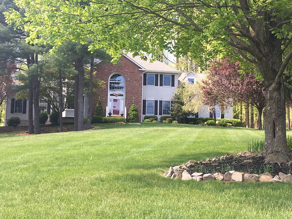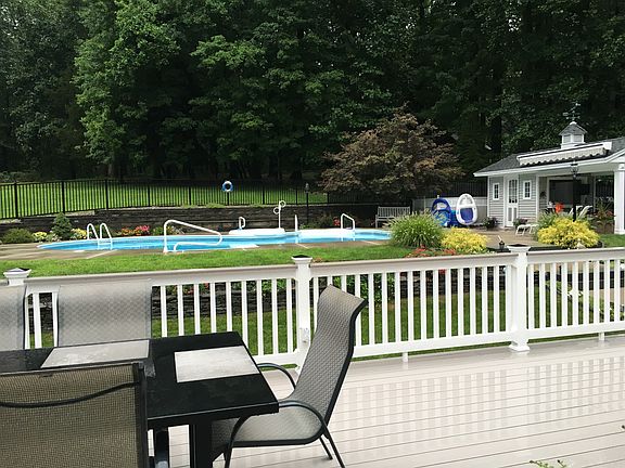 Move into this beautiful home and you will never want to leave it! Set in a picturesque location on a quiet cul-de-sac of distinctive homes, you will enjoy a park-like property on nearly 4 acres. Vacation at home with a private, fenced backyard that boasts a heated in-ground pool with stone paver walkway, pool house, bar, patio and maintenance free deck. 2 remote power awnings and lovely manicured landscaping. State of the art kitchen features a commercial grade 40" Woolf oven and center isle breakfast bar that will please any chef. Step down into the Family Room with a cathedral ceiling, floor-to-ceiling brick hearth and gas FP, wall of windows and sliders to spacious deck. First floor bedroom or office and laundry room. Generously sized rooms, 3 walk-in closets. Whole house generator, Perfect for entertaining!