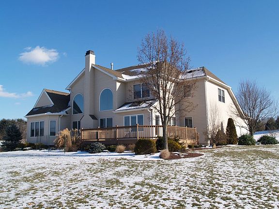 The dramatic angles & light-filled spaces of this Waterford model flow freely w/ a unique & open floor plan that is warm & inviting. The grand two story foyer offers elegant design details such as an angled staircase, two piece crown molding & hardwood floors. To the right is a library w/ vaulted ceilings, lighted, built-in bookcases, a ceiling fan, recessed lights and two sunburst windows. To the left is a spacious formal dining room w/ elegant moldings,hardwood floors sun burst windows, 2 piece crown molding, chair rail and a dry bar as you walk to the kitchen. The room is spacious enough to accommodate a large gatherings. From the foyer continue straight ahead into the sun bathed family room/great room with soaring wall of windows offering beautiful hilltop views and an expanded floor plan. The space offers a gas fireplace, ceiling fan, upgraded carpet, an art nook on the back wall and opens to an oversized gourmet kitchen, also with an expanded floor plan. The kitchen offers an abundance of cabinet and counter space, upgraded GE profile appliances, a dry bar/butler’s pantry, a pantry and a multi level counter making it a great place for friends to gather. The dining area is sunny and bright with hardwood floors and opens to a cedar deck. Enjoy the open feeling of the spacious first floor master suite with the voluminous vaulted ceiling, a ceiling fan, his and hers walk in closets and a luxurious master bath with a Jacuzzi tub, stall shower, large vanity with 2 sinks and a private commode. Continuing the open flow upstairs, the second level overlooks both the family room and the foyer. There are 3 large bedrooms each with ceiling fans and an abundance of closet space. The bath has a large vanity with 2 sinks and a tub/shower. The backyard is level and offers beautiful views of the hills of Hunterdon County. Cul-de-sac Street. Blue Ribbon awarded schools.