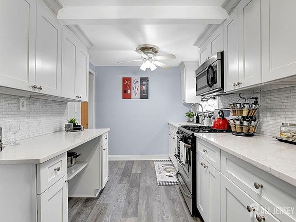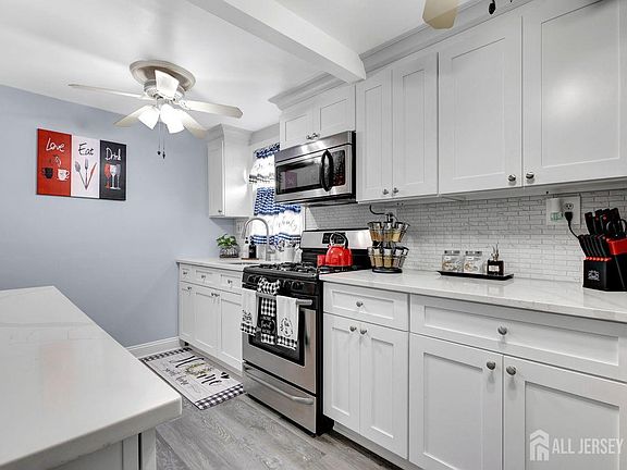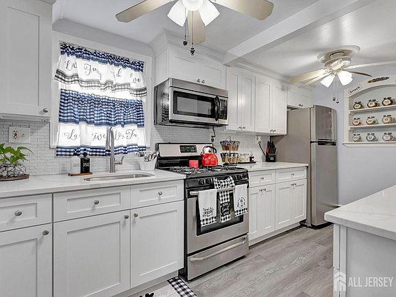 Beautifully renovated Move In Ready 3 bedroom, 1.5 bath home with a loft and enclosed porch. This amazing home is also in one of the most sought after neighborhoods! Pristine condition, clean and freshly painted inside and out. Primary bedroom has a sitting area. New grey/white soft close, stainless and quartz granite kitchen. Kitchen has a separate eating area with a large pantry in the enclosed porch/den. Updated grey and white bathrooms. New Oak Hardwood and laminate flooring! Replaced windows, water heater and state of the art insta hot boiler. New roof and vinyl siding only 3 months old! Full basement finished with a summer kitchen and walk in closet for extra storage. Detached oversized 2 car garage has a large separate walk in storage area and attic storage. New concrete driveway and walkway. New Rear patio in the large 5000 sq ft Fully Fenced back yard. Deep and Open front porch. The home is in high end condition. Subject to seller relocation. Sellers are retiring and your opportunity to get a very updated/renovated and loved home. Fantastic location: Close to Ferry and Bus stop (bus 116 on Roosevelt Ave and Essex St) to Manhattan NY. Close to shopping, major routes, the desirable section of Carteret Middle and High Schools, near Carteret Performing Arts and Events Center, Sullivan Field and Carteret Park. "Sprinkle Park" in Carteret, NJ, refers to the popular Carteret Park Playground and Sprayground, located on Carteret Avenue and Cypress Street. This recently renovated park features a dry playground for kids, a seasonal spray park (with a visible umbrella indicating it's open), restrooms, picnic areas with tables, a pond, and nearby sports facilities like basketball courts and soccer fields. Two Blocks from Carteret Waterfront Park with a fitness trail, mini-golf & a boat ramp, plus a pavilion for summer concerts and free movies in the park. Three blocks to the Carteret Ramblers Football Stadium for Carteret High School which competes in the Big Central Conference.