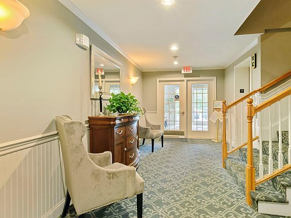 Have you been waiting for a First floor unit at Sterling Hill? So easy to take your dog for a walk without having to access common hallways? This is it. Located in a building 3 across from the Fountain/Pond. No need to look at a parking lot or other buildings. Your first floor deck accesses a lovely grassed area bored by trees. The unit location is also close to elevator or stairs to reach your car and private storage area. The unit has Hardwood floor in the living area and carpet in bedrooms, tile in baths. Beautiful open concept with wainscoting and gas fireplace. Ensuite Master Bedroom and good size second bedroom and guest bath. The club house is close by and includes, lending library, computers and exercise equipment. Plenty of space for card games and get togethers. There is also an outside sitting area with gas grills. Last but not leased a Gazebo and community garden! Owners love living at Sterling Hill take a look.