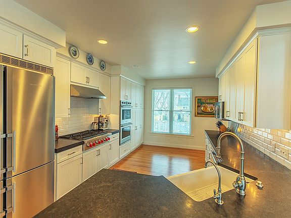 Located on a quiet street with views of Camden Harbor, this charming home is conveniently located within walking distance to the fine shops and dining in Camden village. Constructed in 2002, well-maintained and updated, the living area is centered around a comfortable great room with a soaring ceiling and windows allowing plenty of light. The house features four bedrooms, including a downstairs master, each with an en-suite bath and two of the bedrooms have private balconies overlooking the harbor. Sited on .26± acres, the grounds have been expertly landscaped with stonework, mature native plantings, a masonry firepit, and two decks provide an ideal backdrop for warm summer nights or celebratory fireworks over the harbor.