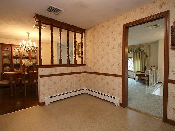 Perfectly located Split Entry Ranch features 7 rooms, 3 bedrooms, 1 1/2 baths, spacious living room open to dining room with sliders to heated (electric heat) sunroom, hardwood flooring under carpeting (according to seller), finished lower level offers family room with fireplace and built-in bar, one car garage under, central air, newly installed heated helmet for ice dams, great corner lot located on great cul-de-sac! Great neighborhood!