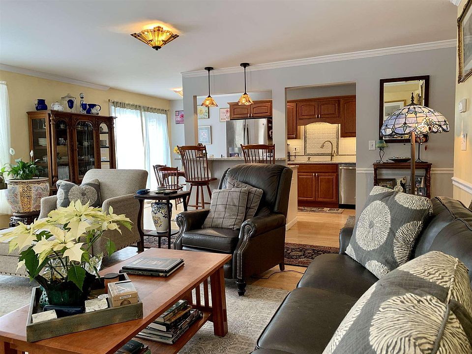 Beautiful 3 bedroom home located in a private serene setting on 1.5 acres. Open concept kitchen/dining and living areas with hardwood floors are perfect for entertaining. Central AC throughout, 2nd level laundry. The private deck from the kitchen offer sweeping views of fields, woodlands and wildlife. Recent upgrades include new kitchen GE Cafe Series appliances, quartz counter tops with custom made Italian tile backsplash. Hand crafted stained glass Mission style light fixtures on main floor. Three bedrooms on the second level include a spacious master suite with vaulted ceilings and full of natural light. The finished lower level, perfect for a home office or game room, has new carpet, maple floor with Brazilian Cherry feature strip and a new bar made from Tiger Eye wood. Close to Portsmouth, shopping and the beaches. Desirable SAU16 school district.