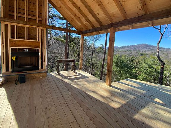Spectacular Long Range Mtn. Views from Strawberry Ridge. Vista Pruning in process but it's already Awe-Inspiring. Prow-Front Cabin w GLASS WALLS opening up the Spacious Great Room. Wrap Around Porches & deck...Wood-Burning Fireplace on the Party Porch. Huge Great Rm w/Stone Fireplace & Kitchen Raised Counter bar (Ample Dining Area). Stained Trim, Ceramic Tile Bathrooms & ALL Wood Interior. Terrace Level Bonus Family Room w/Wetbar. A Bedroom & Full Bath on Each Level with Plenty of Storage. Only 3 residences in this Small Subdivision of Strawberry Ridge with a Shared Well & Shared Driveway. Only 2/10 mi from Hardscrabble (Paved County Rd). Quick access to NC & TN (white water rafting, Casino, etc). No Restriction against Short Term Rental.