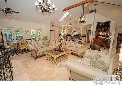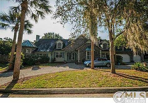 Striking French Country design custom home sprawls across a park-like setting with beautiful oaks & palms. Quality fit and finish throughout - hardwood cabinetry, trim moldings, doors, ceilings, stair case - made exotic woods, copper clad turret, stone finish, private pool, copper gutters, vaulted ceilings, two fire places, and a French gourmet kitchen. Marble tile floors for a warm comfortable feel. Master suite features a private fireplace, glass turret alcove, volume ceilings, cove lighting, walk in tub & shower. French doors to the very private pool & hot tub. Kitchen features breakfast bar, two refrigerator/freezers, 6-burner gas range, electric range. Two additional spacious bedrooms, den, three full baths and a half. Three-car garage. Amazing.