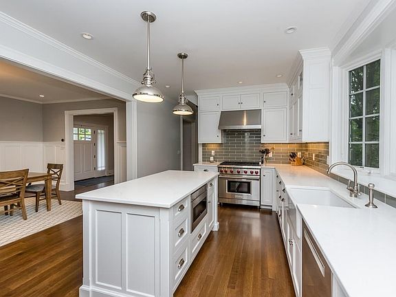 A truly spectacular renovation! Get excited about this one, you won't be disappointed. This is gorgeous, top quality work done to the highest standard by very well known builders. Every room has been transformed to clean, sleek surroundings that will bring you joy to live in. The owners put huge money into this project and it shows, from the custom built cabinetry and counters in the kitchen to gleaming hard wood floors everywhere to the cool, modern baths with fabulous tile, tubs and fixtures. The basement is roughed out, perfect for storage or a playroom.The yard is lovely and serene. This is a very quiet street but an easy walk to schools, trains and the town center.