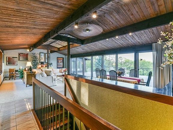 Spacious Prairie Style Home in tranquil Dune Acres - PRICED TO SELL! This immaculately maintained home is perfect for wknds or yr-round living, w/ 5 BRs & 5 Baths - including a sumptuous Master and TWO Guest Suites. The Great Room has walls of windows, with tree-top views of the surrounding dunes, and opens onto a Huge Deck. There is also a nicely appointed Galley Kitchen and Formal Dining Area, set off by handsome built-ins, for elegant indoor/outdoor entertaining. The Main Floor Master has its own Separate Dressing Rm & a Private Balcony. At the other end of the Great Rm is another ensuite BR (or Den), with fireplace. The Family Room features a full wet bar (or guest kitchen) and opens to the heated indoor pool. Beautifully landscaped, with two decks, & only a short walk to miles of Wide Sandy Beach, this home offers the best of Lakefront living. Served by award-winning schools & nearby shopping, Dune Acres is just an hour to the Loop by car & only minutes to the Dune Park Station.