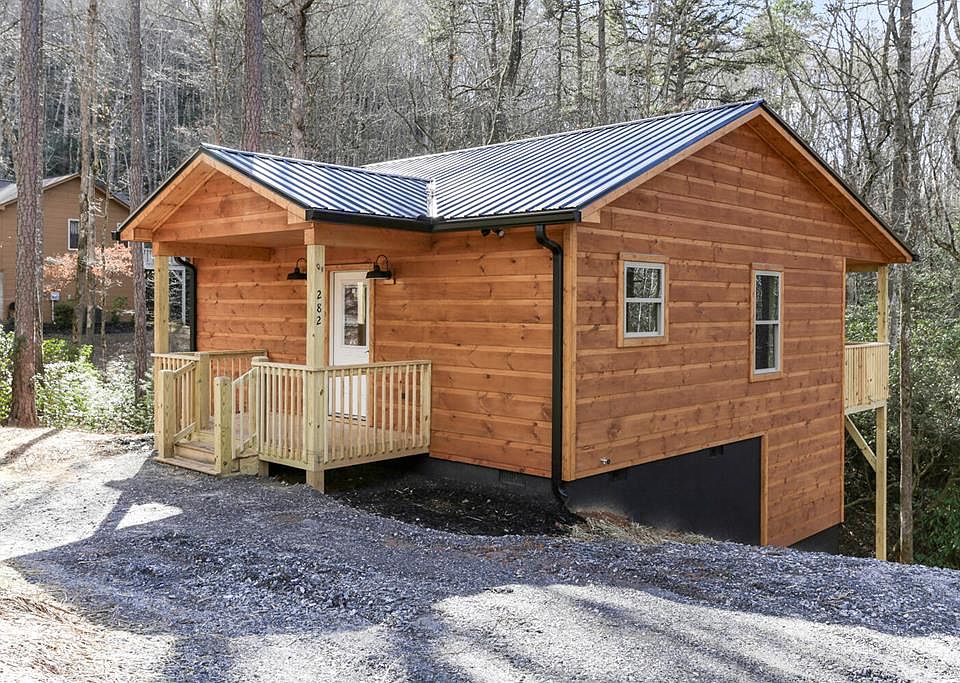 A new home by one of Murphy's best home builders! This charming single-level 1 bed/1 bath home, nestled within the Martins Creek community, offers a serene retreat just minutes from town. This home is currently under construction, promising a delightful blend of rural ambiance and modern amenities. The exterior boasts a rustic presence, featuring rough-cut siding that compliments the natural surroundings and a durable metal roof. The fully covered view porch is the perfect spot to relax and take in nature's sights and sounds. Inside you'll be greeted entirely with a warm wood interior inviting a cozy atmosphere. The heart of this home is the great room, where a stunning stone corner fireplace provides both warmth and a focal point for gatherings. The vaulted wood ceiling enhances the sense of space and airiness in this room, making it an ideal place to entertain or unwind. Hardwood flooring extends throughout the home, adding a touch of timeless beauty. The kitchen showcases hickory cabinets, granite countertops and an appliance package for modern convenience. For those who appreciate pure, pristine water, this property draws its water supply from a natural spring, ensuring a clean and refreshing source for your daily needs. Additionally, modern connectivity is at your fingertips.