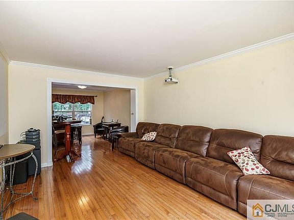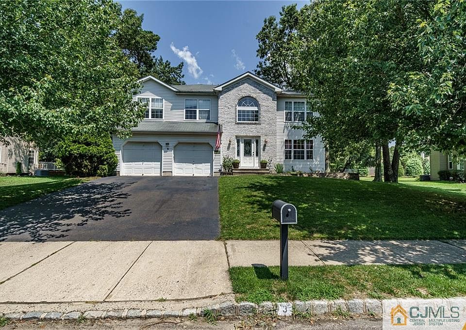 Stunning 4 BR 2.5 Bath Colonial in desirable Howell boasts features to fall in love with! Step into the light&bright foyer to find a spacious LR w/gleaming HW floors & crown molding throughout. Complete w/a projector & screen, the ideal space for Movie Nights, too! Formal DR, currently the Bar, makes for easy entertaining! Sizable EIK feats. gorgeous deep stained HW floors, passthrough window, dinette area & French Doors to the deck. 2 story FR will take your breath away, feat. an exquisite marbled fireplace & picturesque windows that illuminate the rm! Laundry & 1/2 bath complete this lvl. Upstairs, find 4 large BRs w/plush carpets & ample closets, inc the Master! MBR offers it's own entrance to the main bath. Finished basement holds a perfect Rec Rm for endless play, +utility/storage rm! HUGE yard makes outdoor gatherings a breeze, complete w/Large Custom Deck, Wooden Swing Set, BBall Court, Soccer Goal w/backup Net, Shed & in ground sprinklers! A MUST SEE!