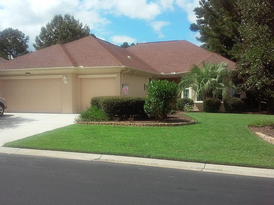 Well-appointed Hatteras 2 bed, 2 bath w/ a den (3rd bdrm option). FULL 3,YES 3 CAR extended 24' garage. Huge eat-in kitchen includes granite cntrs & island, slide out shelving, lots of natural light from bay window w/gorgeous plantation shutters. Large living room boasts built-ins & separate dining area. Laundry has cabs & sink. Enjoy the beautiful wooded view from the large glass/screened porch w/ thermal windows. Huge master bdrm w/ bay window & sitting area leads out to porch! Smooth ceilings! Garage has solar tube, cabs & loft storage. HVAC air handler & H20 heater 2015. Aprilaire HEPA filter & Wifi thermostat. Clean stucco report.