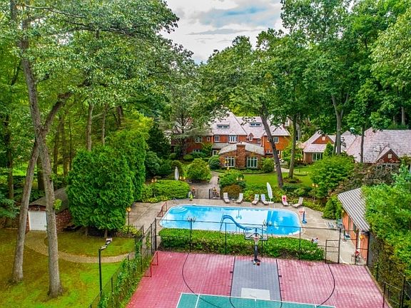 This magnificent 32 rm English Manor is where stately elegance meets unparalleled functionality. Designed to cater to every aspect of your lifestyle, a blend of Work, Living, & Entertainment. In addition to grandeur living, the 3k+ SF OFFICE WING, provides exceptional space for business execs. "The Basilica" w/balcony, theater seating, audio equip, remote conference/window screens & kitchenette will impress (hand painted stories inspired by St Peter's Basilica).The MAIN RESIDENCE has 9 BDRMS, 13 BTHS, 2 atriums, Library, 5 Gas FP, Formal LR & DR, Great Rm, Parlor, Butler's pantry, KIT, theater, game rms, Sauna, Dumbwaiter, 3k bottle climate-controlled Wine Cellar, Maid's Qtrs & MORE. 2.5+ fenced-in acres within a serene cul-de-sac, offering privacy & security. Impressive outdoor lighting & landscaping, Heated IG pool, cabana w/KIT, 2 full BTHS w/lockers, multi sports court w/lighting, 75 yd fairway & golf green. Koi pond, Stunning 9' Fountain, screened gazebo, flowered pergola, multiple patios & paver paths beckon you. The estate offers a private Au Paire Suite, CARETAKER Apt, 9 GARAGES & plenty of parking. 64kw Generac generator (2021) services entire estate. Enjoy a vibrant, thriving community known for its renowned schools, diverse population, & abundant recreation, town pool, lakes, shopping, dining, & cultural experiences. Easy commute to NYC. Come & experience the luxury, versatility, & grandeur of this one-of-a-kind property! LISTED BELOW APPRAISED VALUE! (Sept 2023).