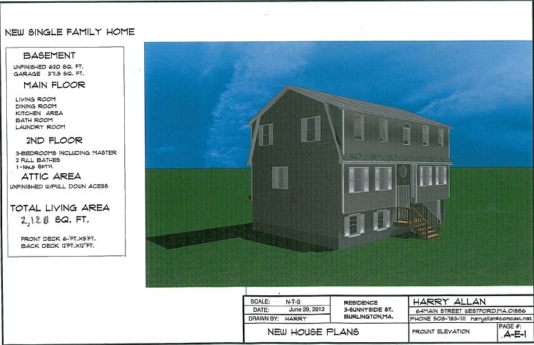 New Dutch Gambrel in desirable Burlington. First floor features hardwood throughout, large eat-in kitchen with slider to deck, half-bath, laundry room, living room, dining room. Three bedrooms including master suite with walk-in closet and full bath. 1-car garage under and finished room in basement with full bath. Great commuter location, close to major routes.
