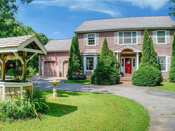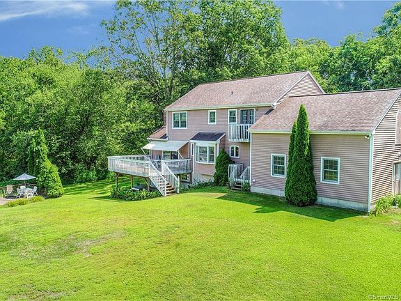 This 2.65 acres of level land has it all! A spacious 2429 colonial with 9 rooms, 4 bedrooms 2.5 baths, full finished lower level, large deck, balcony off master bedroom, and a large unfinished room off the master bedroom. In addition there are 2 detached buildings. One is a large barn/garage with parking for 3 plus vehicles, a large work area, and walk up stairs to an unfinished full 2nd floor which would be perfect for an artist studio. The 2nd out building is a spacious building for your pets they have rabbits or other animals permitted by the town. There is a large level yard with an area for a garden, a deck for a pool (no longer have a pool there). The property also has its own pond with a stream/brook flowing from a pond across the street If your looking for a great home with a convenient location and a true country atmosphere you found it.