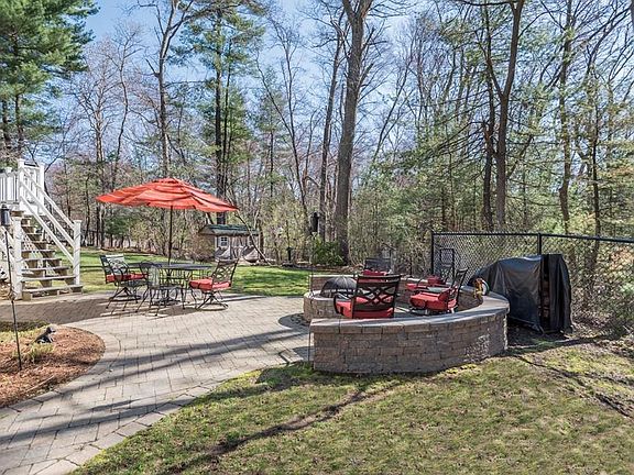 Come enjoy this well maintained home situated on nearly an acre level lot with black vinyl chain link fenced in yard. Sit in the four season sun room overlooking the tree lined lot or enjoy the large deck in warmer weather. Stone custom built fire pit and patio that only the pictures can describe. Dining area with bay window. Lower level fire place family room/office with newer carpet & built in book shelves. Laundry area with huge storage space. Professionally landscaped lot with seasonal flowers. New septic system to be installed prior to closing. Hardwood floors in may rooms and common hallway. Gas baseboard heat and central air conditioning. Abundance of cherry cabinets & stainless appliances. Recessed lighting, updated baths, cedar siding, replacement windows, exterior doors, roof etc. One car garage plus six parking spots on refurbished driveway. A must see!