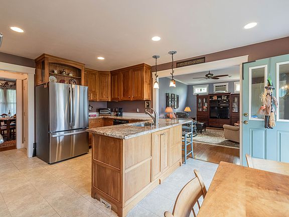 This spacious Cape style home was built in the spring of 2004 and is now ready for a new family. The kitchen features a spectacular westerly scenic view of the NH hills. The custom built kitchen cabinets are solid cherry. Other elements of the kitchen design are 2 electric Jenn-Air wall ovens and a separate propane gas cook top, a trash compactor, a dishwasher and a new GE refrigerator. Under cabinet lighting highlights the granite counter top. From the kitchen, several other rooms are easily accessed. A pocket door allows direct entry to a room that serves as a food pantry and also contains a washer, dryer and a laundry sink. A butlers' pantry separates the kitchen from the dining room. There is also direct access to the attached 2 car garage. An open concept leads to the living room which has a propane fired gas stove. Off the living room there is an office. A half bath is available on the first floor and also the primary suite, with a walk in closet, a bathroom with a separate shower and a Jacuzzi type tub. The wide stairway leading upstairs has 7 inch risers and detailed railings. There are 2 bedrooms on the second level with a full bathroom and attic space for storage needs. There is concealed framing for a door to gain access to space above the garage .This home has a full unfinished walk out basement and a closet used for wine storage. Outside you have 1.4 acres of lawn and ornamental trees, a garden with blueberry bushes, rhubarb plants, herbs and a custom built shed the owner made for his wife. A large patio overlooks this back yard to catch the sunset views. This home also has a front farmer's porch, is pre wired for a generator, has a central vacuum system, a security system and lightning protection. Enjoy the country living in Berwick and the soon coming ''Berwick Edge'' currently being developed which will offer shops and eateries. All the Berwick public services are less than a mile away from here. Berwick borders NH for major retail stores.