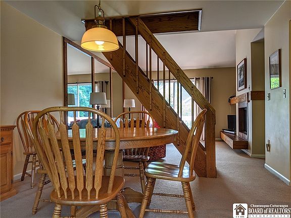 TWO WEEK TIME SHARE INTERVAL for SALE! Come enjoy the beautiful fall weather at Chautauqua every year during interval 11. Usage dates for the next two years are 9/9/23-9/23/23 and 9/7/24-9/21/24. Enjoy peeks of Chautauqua Lake and Packard Manor from the back porch. The front porch faces the lower pool and there is a community grill close by. Enjoy walking and biking the grounds and visiting local attractions. This three bedroom, two and a half bath condo will sleep 8 if you use the sleeper sofa. The heated pool is open in September. The main level has an open living room, kitchen and dining area plus a half bath. The lower level has two bedrooms and two baths and up from the living room is a third loft bedroom. Annual condo dues, taxes and insurance are less than it would cost to rent for two weeks. There is designated parking for each North Shore condo. Time share units are not pet friendly. An easy and affordable way to enjoy Chautauqua every year. You may also join RCI but it is not required. Additional time share intervals are available.