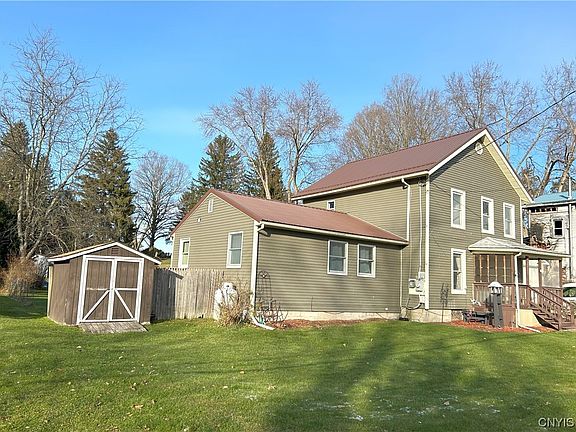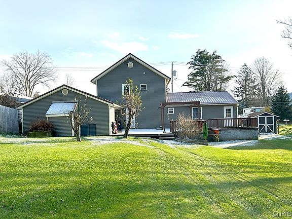 Welcome to this very well maintained and spacious two story village property. The home features three bedrooms and two full baths, with the possibility of a fourth bedroom. Relax and watch a movie in the living room with a built in surround sound system, while the propane fireplace keeps you cozy. A beautiful breakfast bar offers a soothing transition from the living room into the kitchen, boasting high quality custom hardwood cabinetry as well as stainless steel appliances. The gorgeous woodwork does not stop in the kitchen! You will also find charming touches of it in various rooms throughout the house. Enjoy the huge back yard with a fence between both neighbors, a basketball hoop with a concrete slab, and a giant deck space perfect for entertaining. The attached one car garage and multiple sheds provide ample storage for all your needs. You will love the conveniences of living in the village with quick access to I81 for an easy commute, restaurants, groceries, gas and much more.