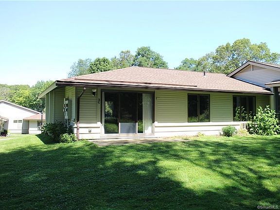 This is a truly spectacular and unique end unit with scenic views of a small pond and the woods. Glen Ridge is a 55+ co-operative community close to downtown Storrs. Enjoy one level living in this 2 bedroom, 2 full bath unit. Walk into the large living room that offers plenty of space to include a dining table. A huge glass sliding door leads out to a patio where you can sit and relax facing the pond watching the wildlife. The kitchen has lots of cabinets, includes a dishwasher, pantry closet and large window for natural light. Down the hall there is a full bath with a tub/shower, which is nice for guests to use. There is a laundry closet with a washer & dryer as well in the hallway. The master bedroom has two closets and a full bath with a walk-in shower stall. There is a good sized second bedroom with a closet for a guest room, den, office or hobby room. Both bathrooms have linen closets for extra storage. Wall A/C units provide cooling in the summer months. There is hardwood flooring under the carpets in the living room and hallway if you are interested in making a fresh look. The water heater is new in 2019. Why shovel anymore? Don't miss this opportunity as we approach the change into the colder, snowy season to live in a maintenance free community.