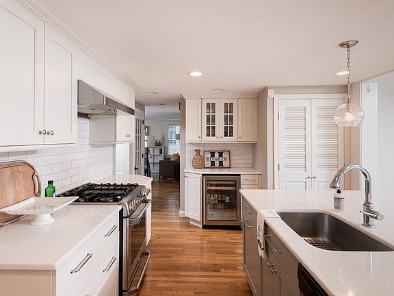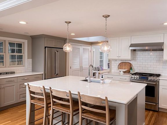 First offering in Bradley Woods with this level of expansion and upgrades! This tastefully designed 3 bed 3 bth expanded cape offers quality and charm in a wonderful neighborhood minutes to the commuter boat, train and everything Hingham has to offer. Renovations during the sellers' ownership include a new designer kitchen with center island, marble counter tops, high-quality cabinetry, hardware and beverage fridge, a 16x16 family room flooded with natural light overlooking the private, wooded backyard, an enlarged living room with gas fireplace, office or nursery and first floor master suite with walk-in closet and en-suite bath, a mudroom and office/family command station with custom window seat, built-in desk for two and storage and a finished basement with custom built-ins. Other recent updates include bathrooms, central air, patio and fence. Sought-after Bradley Woods features a playground and cul-de-sacs throughout where kids play and neighbors gather. A turnkey home to enjoy!
