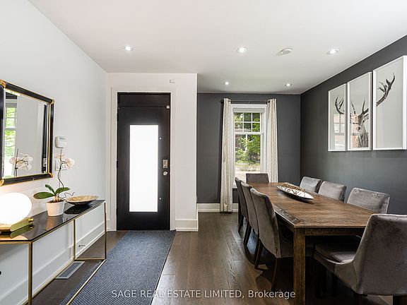 BROWNSTONE STYLE MEETS DUFFERIN GROVE VIBE Built in 2016, this turn-key, brownstone-inspired townhouse offers over 2,300 SQFT of stylish living space on all levels, with 3 bedrooms and 3 bathrooms. At less than $730 per SQFT! Designed for modern elegance and low-maintenance living, it's the perfect balance of condo convenience and freehold freedom. The open-concept main floor with floating stairs and soaring 9-foot ceilings creates a bright, airy feel. The custom Italian kitchen, wide-plank hardwood floors, and cozy gas fireplace set the stage for relaxed evenings and effortless entertaining. Patio doors open to a sun-soaked outdoor space, perfect for morning coffee or a glass of wine after work. The second floor offers two spacious bedrooms with ample closets and natural light, plus a convenient laundry room and a sleek three-piece bath. The entire third floor is dedicated to the primary suite a 650 SQFT retreat with custom built-ins, two walk-in closets, a spa-inspired ensuite with a soaker tub and separate water closet, and a balcony to unwind. The lower level offers flexibility, with space that can be tailored as a family room, gym, or home office. Move-in ready, this home offers the lock-and-leave convenience of a condo with the space and comfort of a freehold, at a maintenance fee that is only a fraction of the typical condo costs for this much space.