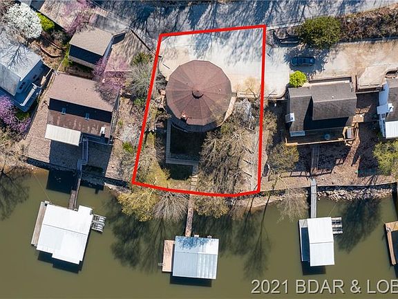 Breathtaking views from this unique home located in Beauty Cove at Lake of the Ozarks. The Dome Shaped home features luxurious 180-degree lake views from the multiple level, wrap around decks. Beauty Cove offers you everything you want in a lake front home with DEEP WATER, COVE PROTECTION to enjoy swimming off your swim platform, and convenient location by both land and water for anything you might want/need. This 4BR/2.5BA home is equipped with main level living featuring an open floor plan, spacious master suite with 2 closets, and lets not forget that million dollar view. The lower level adds additional privacy with the 3 large bedrooms and the family room's access to the private wrap around deck. Also included is enough parking for 5 vehicles & the private dock with two 10x24 boat slips & the 4500 lb. & 6500 lb. boat lifts allowing you to have the BEST LAKE LIFE experience. Don't miss this opportunity... Schedule a private showing today!