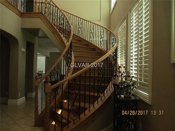 SOME FINISHED WITH STLISH FRUNITURE. Gracious two-story home with golf view, strip view and mountain view. Plantation style entry shutters all over the home. The grand entry features a curved staircase with oak handrail, oak caps, and oak kick. Access the living room through a high arched opening. No pet allowed.