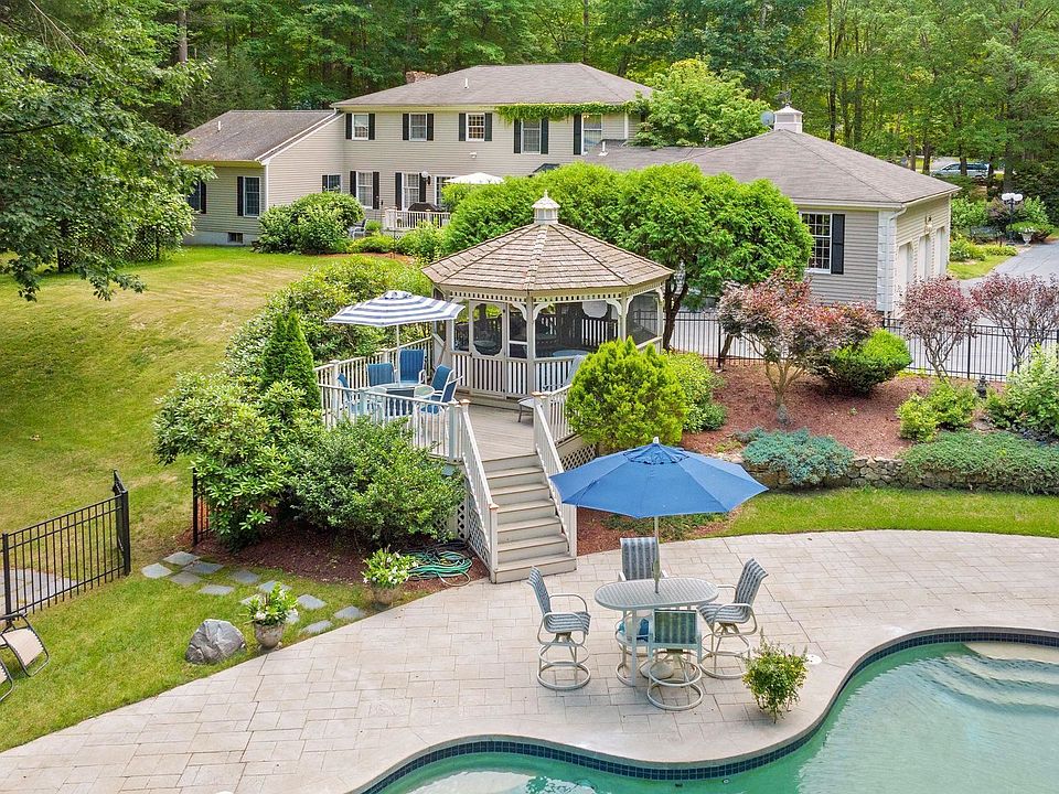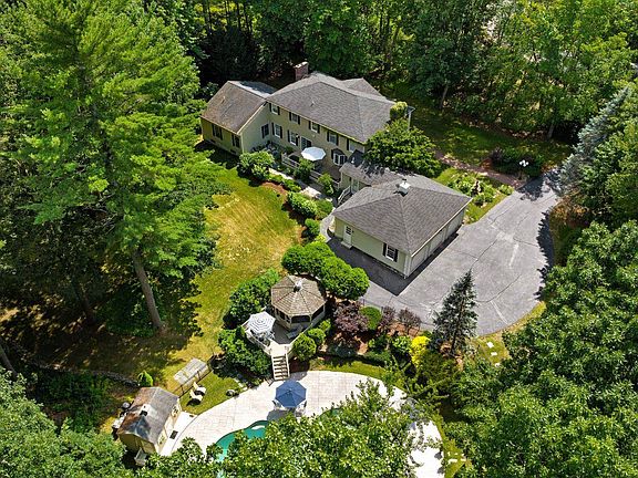 Prepare to be impressed and fall in love with this stately four bedroom Georgian Colonial estate set on a quiet cul de sac within walking distance to the Windham Country Club. This custom built home is sited on 1.64 acres with mature landscaping, custom built stone wall, formal gardens, grape arbor, two gazebos, an in-ground gunite pool with waterfall and a pool house! Inside, there's a gourmet kitchen, formal dining room, music room, office and a grand living room with cathedral ceilings & gas fireplace. Tucked away off the grand living room is a main level bedroom with a private bathroom. Other highlights include a main level laundry room, four fireplaces, finished basement and full gym! Most of the gym equipment will stay. Upstairs, there are 3 large bedrooms including the primary suite with full bath and a wood burning fireplace! Attention to details and craftsmanship like french doors, crown molding, and hardwood floors makes this home shine with character and grace. And for the car enthusiast, there's a three-bay garage with high ceilings and quick access to the basement. Ready to call it home? Showings by Appointment.