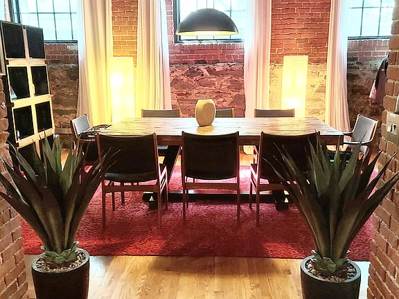 Luxurious and spacious, 1,470 sq.ft. fully FURNISHED LOFT at Davis Square Red Line T. Available Dec. 2nd for Short or Long term. -Size: 1,470 square feet -Design: Elegant fully furnished OPEN Concept industrial loft style with high-end design renovation -Kitchen: Large island, multiple cabinets, gas cooking, ample counter space with a floor inspired by Jackson Pollock -Dining Area: Distinctive with a cool and moody vibe -Living/Entertainment Area: Includes leather sofa and chairs, TV, and entertainment center -Sleeping Area: Private with two tall closets and dressers -Bathroom: Custom designed luxurious onyx-top vanity with open cabinet space -Additional: Stunning grand piano, central AC, smart home features (Google Nest Thermostat and Google Smoke & CO detector) -Atmosphere: Cozy yet sophisticated with hardwood floors, large mirrors, multiple windows, and elegant floor-to-ceiling white drapes -Laundry: In-unit laundry -Parking: Street Parking with Permit, Or available to rent parking space ($100/mth) -Bi-weekly cleaning is included in rental price -Private Entry This one-of-a-kind home combines exquisite style and comfort in each designated area. Available Dec. 2nd. -Short or long term rental is available. -Landlord pays for water and sewage. -The unit is available starting Dec. 2nd 2024. -Renter pays for electric, gas cooking and tele-communications (Phone, internet, TV). -No smoking of any kind.