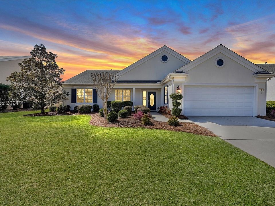 Located in the Sun City Hilton Head community, a Dogwood Model, ideally situated on a glorious golf hole. This home boasts 2 bedrooms, 2 bathrooms, and a flex room/office, perfect for a modern lifestyle. The open concept layout includes a kitchen with an eat-in space, ample cabinets, and an island, ideal for casual dining or entertaining guests. Enjoy seamless flow into the living room and Carolina room, ensuring you're always part of the action. Step outside to the patio and savor your morning coffee or southern sunsets while the golf hole's water features create a serene ambiance. Newer AC, New Roof 2024
