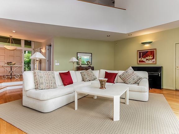 Spectacular waterfront masterpiece. Soaring ceilings, walls of glass and exquisite views of the lake, make for a perfect weekend get away or year round home. With lawns cascading down to the water, an in ground pool overlooking the grounds and multiple decks and terraces to enjoy the serenity of the lake. It is all about the lake, be it water skiing, canoeing, fishing, ice skating, your imagination is the limit. This home set high up from the lake allows for quiet reflection or down at the dock and private beach for full outside fun. The specimen plantings and gardens set amongst the sprawling grounds make for a truly unique property. The house is just as impressive as the setting with architectural features incorporating natural light and glass, and of course the magnificent views. Three levels of living allows for extensive guests and family. Convenient to all, yet your very own private oasis. Come to the lake and never leave.