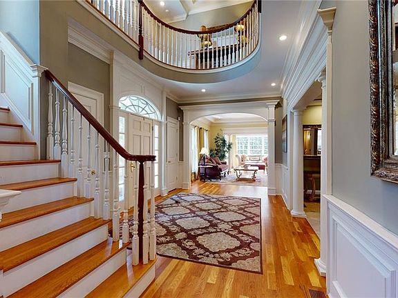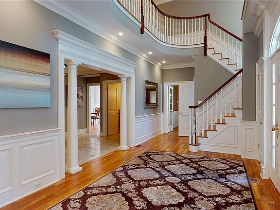 Imagination Meets Craftsmanship - Gorgeous stonework anchors this architecturally inventive home. Stunning columns, intricate, hand-milled wainscotting, graceful archways, coffered ceilings, and hickory floors dress both the comfortable and important spaces that are woven beautifully throughout. Natural light spills through generous windows, filling rooms with 10 ft ceilings. An undulating spindle staircase curves gracefully to the second floor, from the first of two foyers. A piano enclave in the living room adds a charming dimension, while the fireplace (one of five) is exquisitely mantled. The white kitchen remodel, completed in 21, features a spectacular 7 x 5 quartz island, smooth subway tile, and top-of-the-line everything. The study with it's own fireplace makes working from home a pleasure. Large gatherings of 90 associates, or smaller affairs for 20 friends, feel natural thanks to intentional design. Upstairs, the Master Bedroom Suite is a true refuge with a fireplace, separate sitting room, his/her walk in closets and an extraordinary spa bath. All guest bedrooms are ensuites, and a bonus room is ideal for a playroom or yoga studio. The third floor is yours to imagine. The bright, lower level, is a fabulous entertaining option, 12-foot granite full bar, workout room, and lovely full bath. The landscaped grounds could easily accommodate a pool. Close to trails, sidewalks, Dunning Lake, top schools, shopping, and I-84, this one is exceptional.