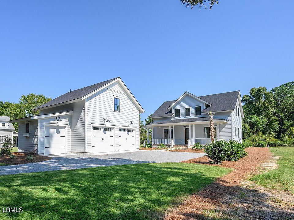 Welcome to 3 The Horseshoe, a spectacular new home located in the prestigious waterfront community of Coosaw Point. This stunning estate is designed for luxury living with exceptional quality finishes throughout. Main Home Features: Total Heated and Cooled Area: 2,489 sq. ft. Bedrooms: 3 Bathrooms: 3 full, 1 half Gross Under Roof: 4,152 sq. ft. Expansive Views: Enjoy breathtaking water views of the Intracoastal Waterway from your own home Carriage House: Heated and Cooled Area: 471 sq. ft. Auxiliary Dwelling: 1 bedroom, 1 bathroom Additional Features: Ideal for a mother-in-law suite or guest house, Two-Car Garage: Unheated - 691 sq. ft. Golf Cart Garage: Included for convenient access to explore the beautiful surroundings