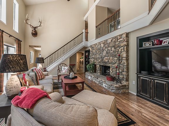 Beautifully updated! This open floor plan ranch with a full basement is highlighted by a completely renovated kitchen with custom cabinets, granite counter tops, stainless appliances and a built-in wine refrigerator. The master bath has been updated with dual raised height vanities. Beautiful hardwoods throughout both levels. The heart of the home is a dramatic 2 story great room with a stone fireplace and custom built-ins. There are 3 bedrooms on the main level plus a private 4th bedroom and full bath on the lower level that's perfect for guests. Office with french doors on lower level. Multiple decks!