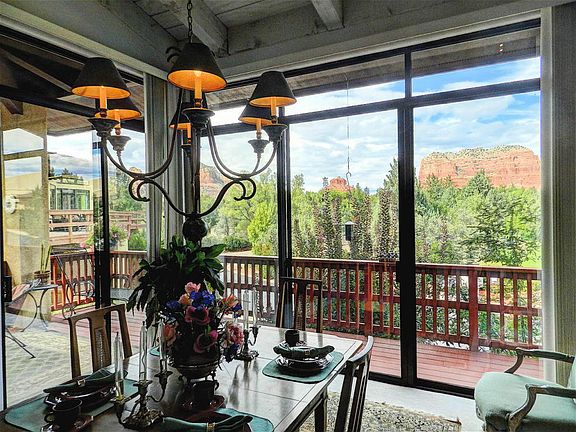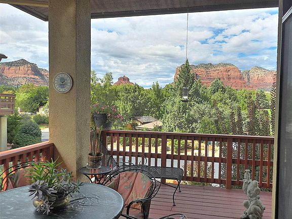 This unique, custom built, 3 bedroom Suites with 3 full bathrooms Townhome, was designed by Ted Cooke and constructed by Bruce Bramlett. Ideally situated on a corner lot to take advantage of the panoramic red rock views from the North and enjoy complete wilderness from the South. Spacious, bright with high vaulted ceiling and double glaze sliders leading out onto wraparound, North West facing balcony to enjoy VIEWS. The house is wired with a security system. There are six skylights with shades to close in the summer. The Bose stero speakers are on the front and back deck and the master bedroom. Propane gas fireplace in the living room will warm up chilly nights. An office room is adjacent to living room and also has a door onto balcony.