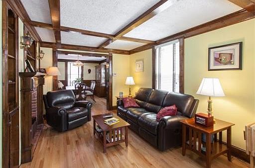A well-maintained 4-bedroom, 1.5 bath, single family with central air, wrap-around front porch, deck, backyard, driveway, and 2-car garage. As you enter the tiled foyer, a handsome two-tone wood staircase is to the left and the kitchen is straight ahead. To the right is the LR, w/large windows and decorative mantel. Beyond it, the DR has cabinets with granite countertop beneath a pass-through to the kitchen. The renovated kitchen has granite counters, white appliances, wood floors. Off the kitchen is a half bath w/silestone and a door to the back deck. On the second floor are a master bedroom, smaller bedroom, study/office, and a full, tiled bath with silestone counter. The carpeted top floor has another bedroom and office as well as eaves storage. Plenty of room to garden, entertain, or play in backyard. Lovely wood floors, updated systems, replacement windows. Walk to Sarma, Highland Kitchen, Union Sq., Armory, Magoun Sq. Near future Gilman Sq. stop on Green Line.
