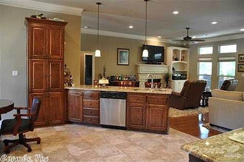 Charleston floor plan! Large eat-in kitchen with stainless appliances and granite counters. Custom cabinetry and breakfast bar. Large great room access to covered deck! Volume ceilings, crown molding, window treatments, hardwood, and tile are just a few of the extras! Master suite offers spacious MBA! Oversized closet is accessible to laundry! Landscaped Low Maintenance lawn, leaf guard gutter, 8000 watt wired generator, and so much more! Custom Christmas lights too! Adjacent lot coveys with home. See Ag Rm Brokered And Advertised By: RE/MAX of Hot Springs Village Listing Agent: Kimberly Taylor