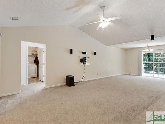 Welcome home to this well maintained 3 bed 2 bath private getaway. Located in the back of the subdivision on one of the biggest lots in its culdesac, you will find a split and semi open floor plan! Master bedroom an en suite bathroom and His and Hers Walk in closets. Guest rooms each have their own walk in closets also! There are NO neighbors behind you, so you can retreat to your backyard for some great privacy or bondfires! Home comes with Surround Sound hook up and speakers, Tv Mount, and appliances. Located just minutes from shopping, airport, gulf stream, and pooler and downtown Savannah. Come take a look and make it your own!